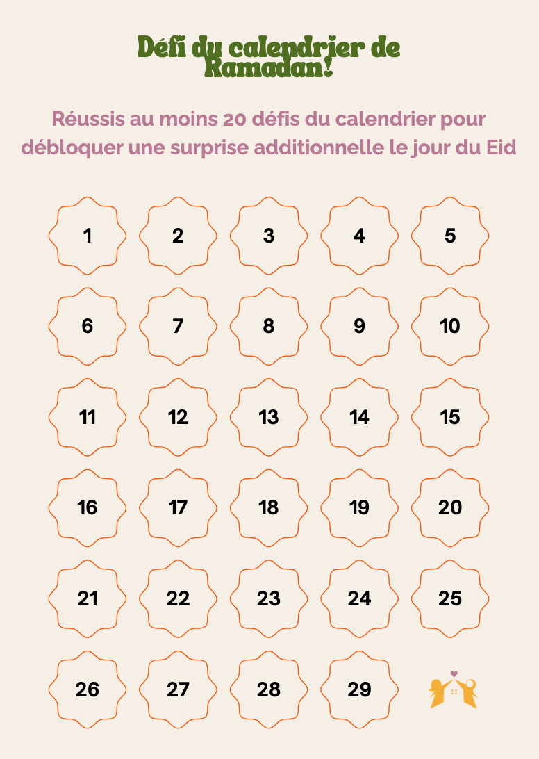 Tableau - défi du calendrier de Ramadan