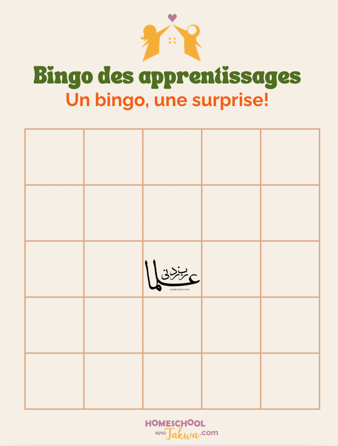 Remplissez-le ensemble avec des idées de choses que vous aimeriez réaliser et, une fois un bingo atteint, récompensez-vous avec une activité surprise!