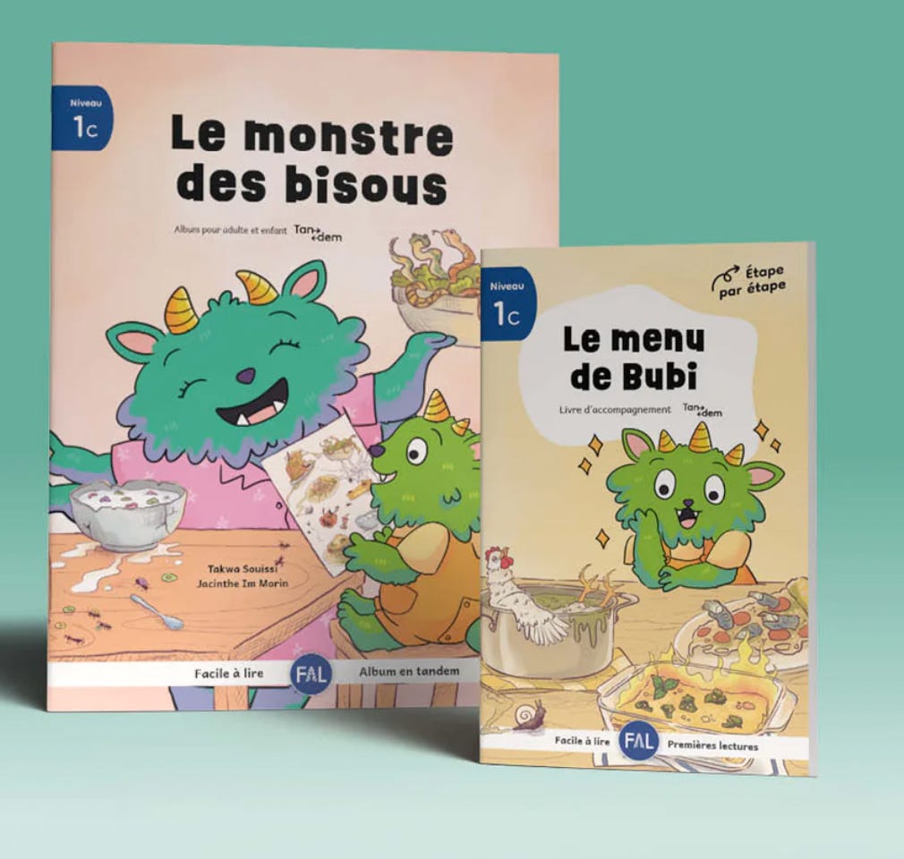 Pour les lectures débutants, on propose une lecture tandem: une page lue par le parent, une autre par l’enfant.